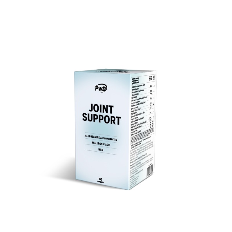 JOINT SUPPORT contiene Sulfato de Glucosamina y Sulfato de Condroitina. El Sulfato de Glucosamina favorece la regeneración del cartílago y la mejor hidratación de la articulación, un cartílago fino y poco hidratado puede dar lugar a dolores fruto del desgaste y de la presión de los nervios internos en la articulación. La presentación en forma de Sulfato es la más efectiva por encima de las demás. Por otra parte el Sulfato de Condroitina contribuye en la articulación a atraer el líquido sinovial, este es el mayor nutriente de las articulaciones y es capaz de llegar a las fisuras más profundas del cartílago y la articulación. También contribuye a inhibir las enzimas que provocan el desgaste del cartílago, proporcionando mejor salud y mas durabilidad del mismo.