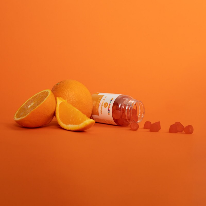 Está diseñado para aportar salud y diversión a la rutina de los más pequeños. En un cómodo formato bote con gominolas sabor naranja, este complemento alimenticio incluye 12 nutrientes esenciales para su desarrollo.Formulado especialmente para niños, sin azúcar, sin gluten y sin lactosa, es ideal para reforzar su sistema inmunitario, apoyar el crecimiento y aportar energía durante el día.